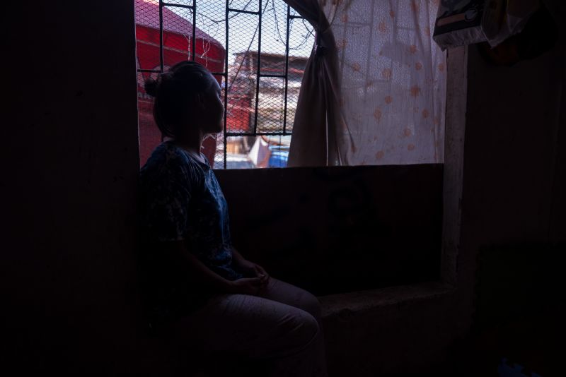 Entre os residentes está Clara, de 14 anos, que mora numa extremidade deste bairro informal. Veste uma grande camisola preta, estampada com grafitis. O pequeno corpo de Clara revela subtilmente a barriga. Agora, com seis meses de gravidez, a jovem e futura mãe espera ter um menino. “Quero que ele seja como o meu irmão mais velho. Não quero que acabe como eu.”